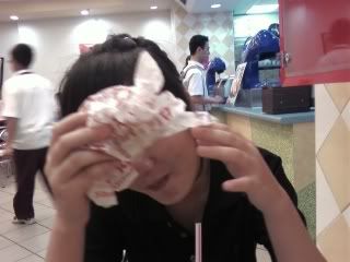 &we were cam-whoring at th food-court, so lame lahhs. she also zi-lian, lame derhhs.