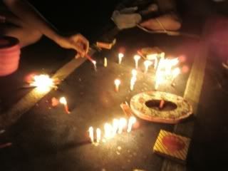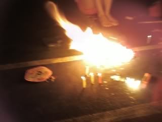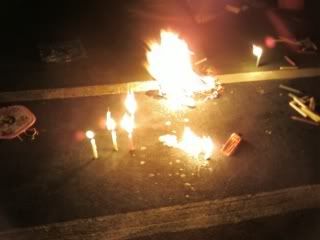 ahahahhawent out at night with sanly and linda to play candles ytd, and we walked to huien's house to give her a surprised. she has got this very shuai de neighbour ! his smile will dian dao ni derhhs. then the four of us went down to my cousin's hse downstair play& we burned alot of papers. it's fun.
